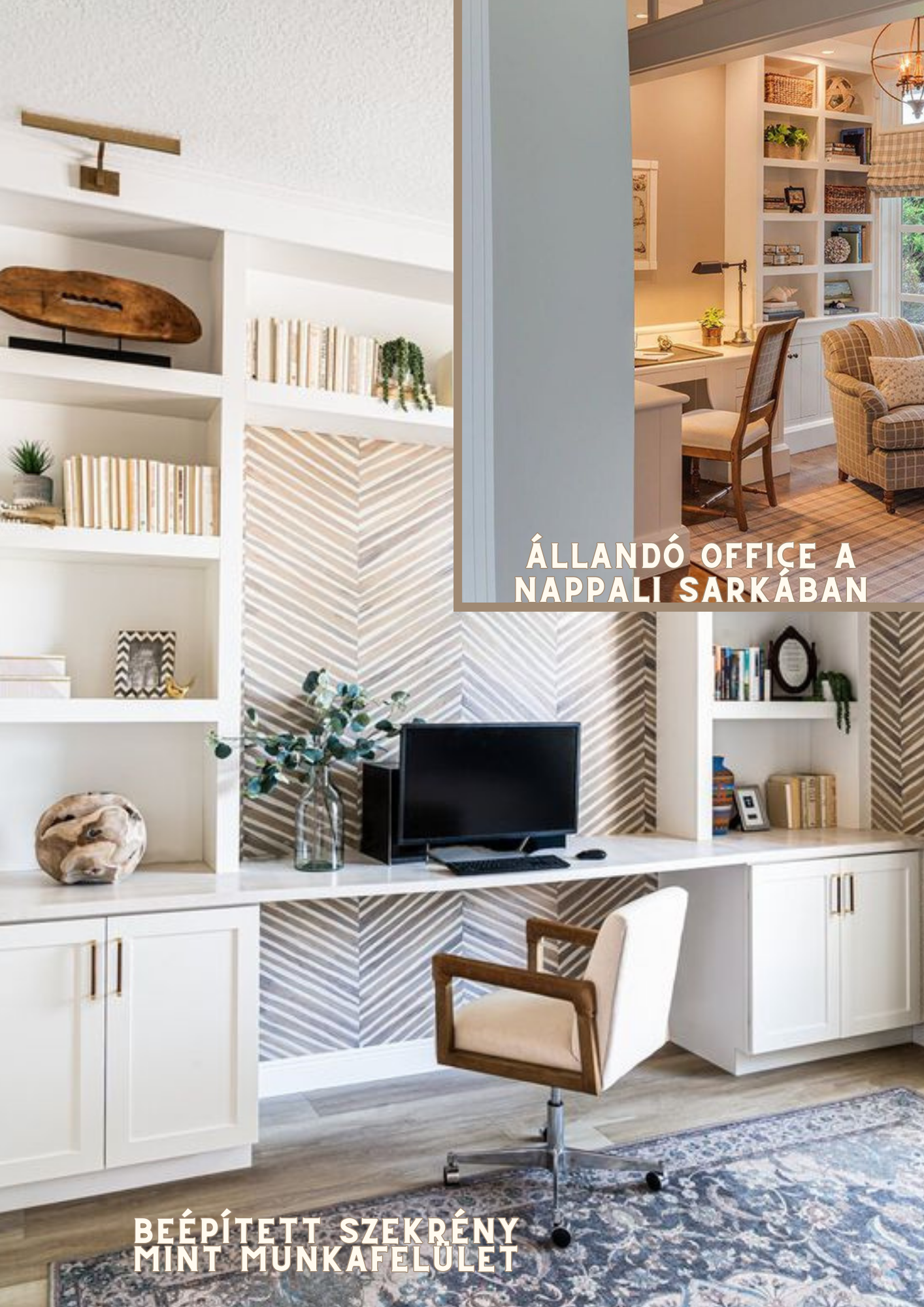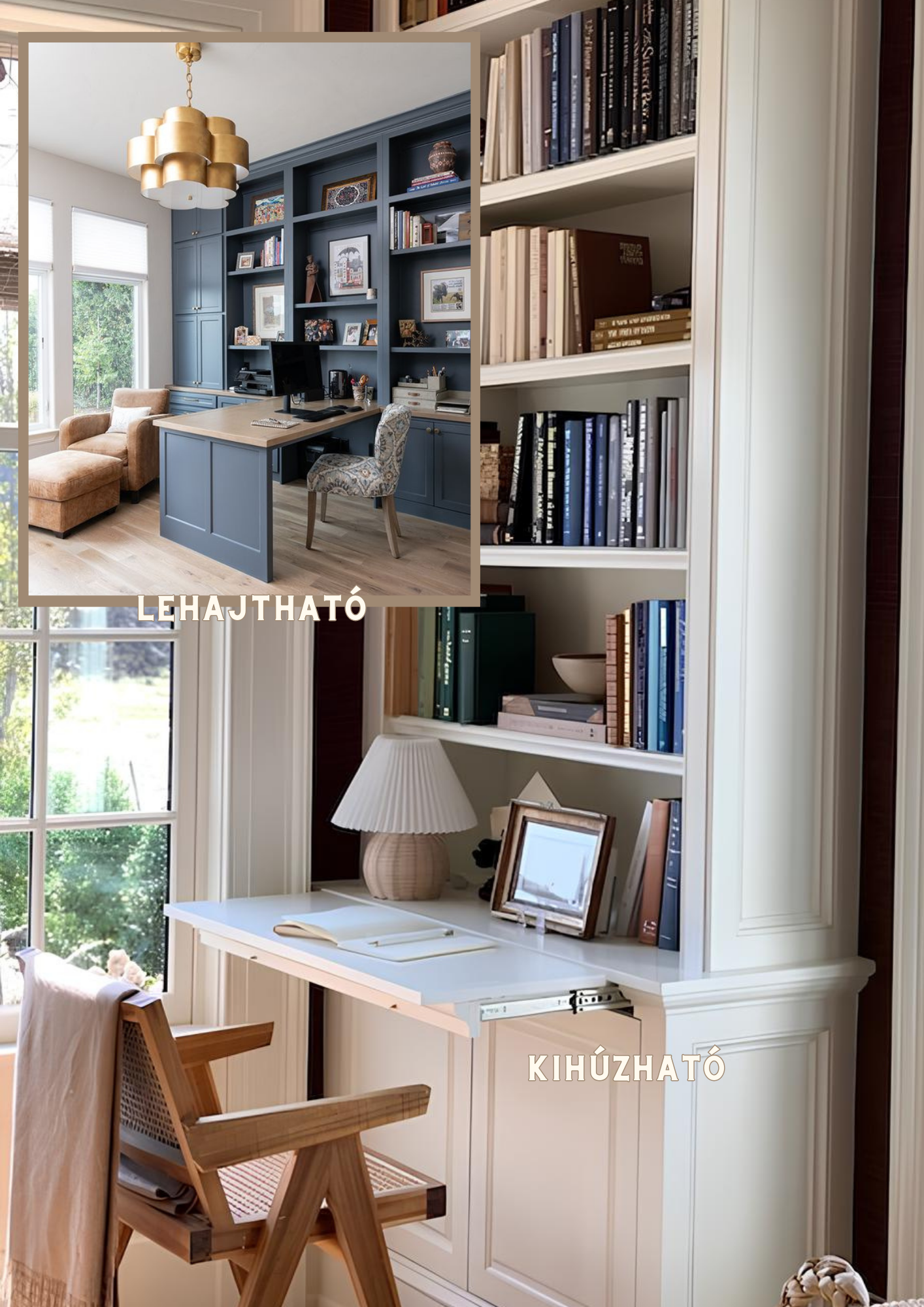 Sokaknak gondot okoz hely hiányában egy külön iroda kialakítása, ezért érdemes több funkciós terekben is gondolkozni, ami többféleképpen nézhet ki: 1. Lehet egy olyan sarok, falrész vagy párkány ami kevésbé kihasznált. 2. Egy beépített szekrényből kialakított asztal és tároló. 3. Egy munka idejére átalakított lehajtható/kihúzható/felnyitható konzolos “asztal” ami különben nincs útban hiszen teljesen elrejthető ha már nincsen rá szükség. De természetesen határ a csillagos ég! Jobbnál jobb megoldásokkal lehet előállni attól függően hogy a rendelkezésre álló tér mit tesz lehetővé.