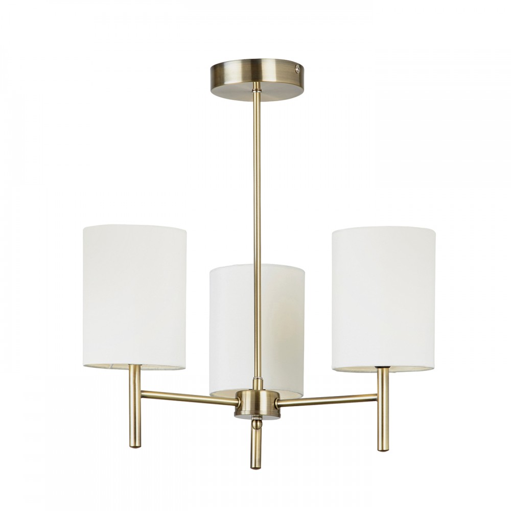 ENDON Brio 3lt Semi flush Antique brass plate & cream fabric 3 x 40W E14 golf - ED-BRIO-3AB