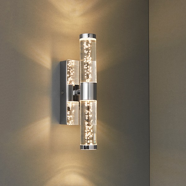 ENDON Essence 2lt Wall Chrome plate & clear bubble acrylic 2 x 3.49W LED (COB) Warm White - ED-72612