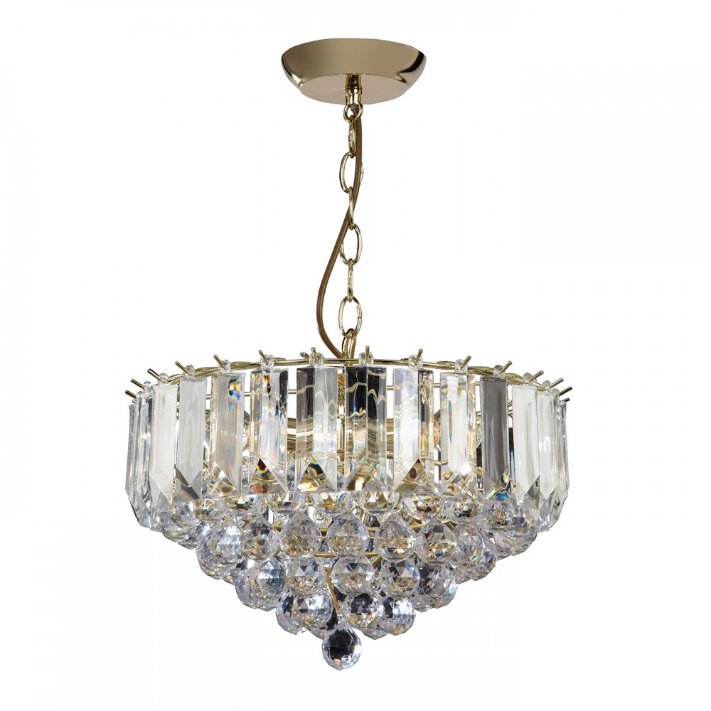 ENDON Fargo 3lt Pendant Brass plate & clear acrylic 3 x 6W LED E14 - ED-FARGO-14BP