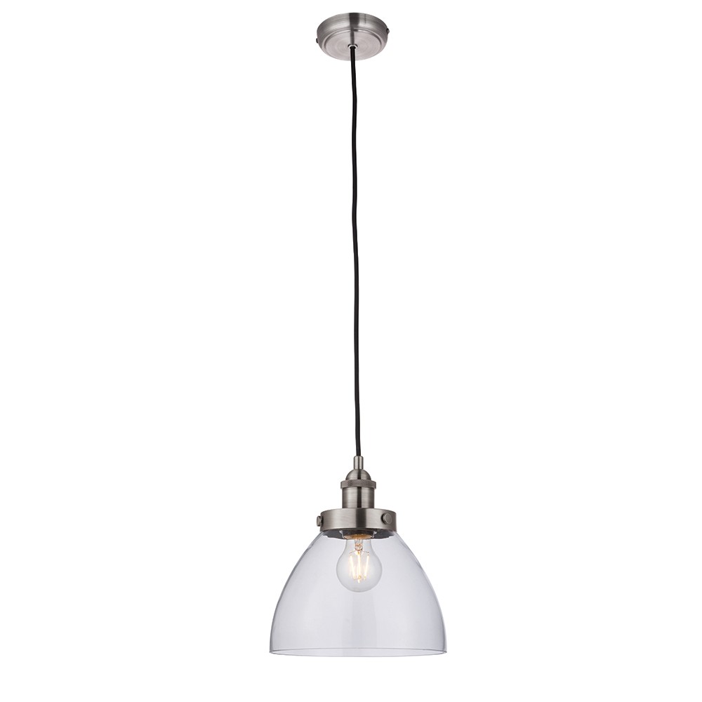 ENDON Hansen 1lt Pendant Brushed silver paint & clear glass 40W E27 GLS - ED-91738