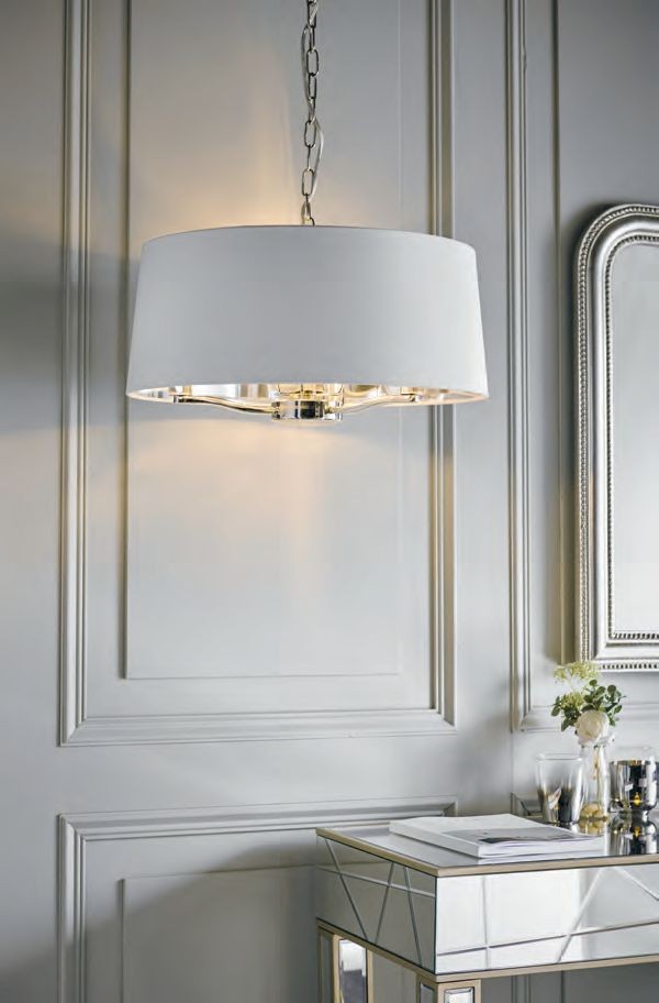 ENDON Harvey 3lt Pendant Bright nickel plate & vintage white fabric 3 x 40W E14 candle - ED-73021