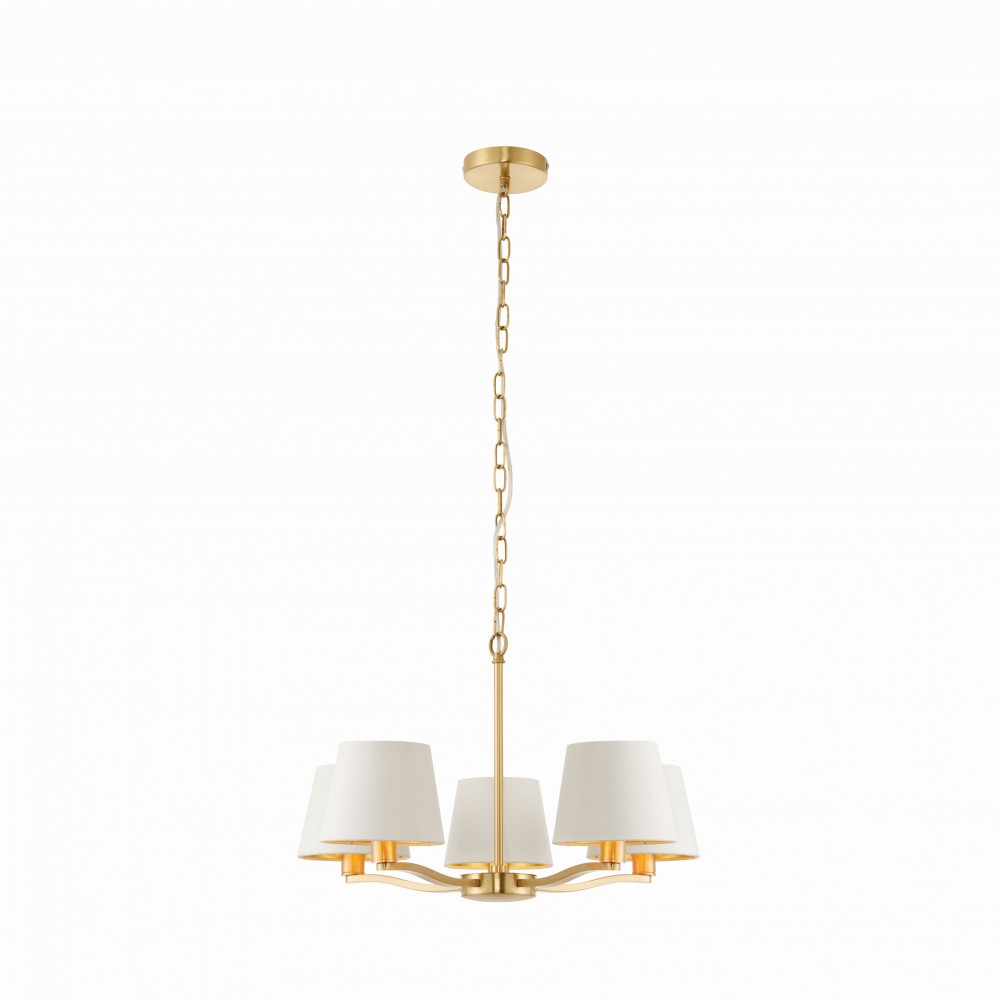 ENDON Harvey 5lt Pendant Brushed satin gold finish & vintage white fabric 5 x 40W E14 candle - ED-67734
