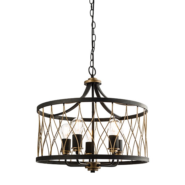 ENDON Heston 5lt Pendant Matt black & rustic bronze paint 5 x 60W E27 GLS - ED-61498