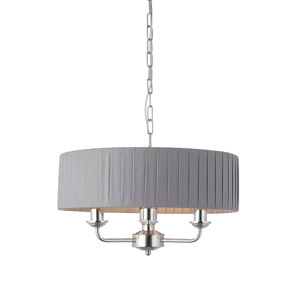 ENDON Highclere 3lt Pendant Bright nickel plate & charcoal fabric 3 x 40W E14 candle - ED-94394