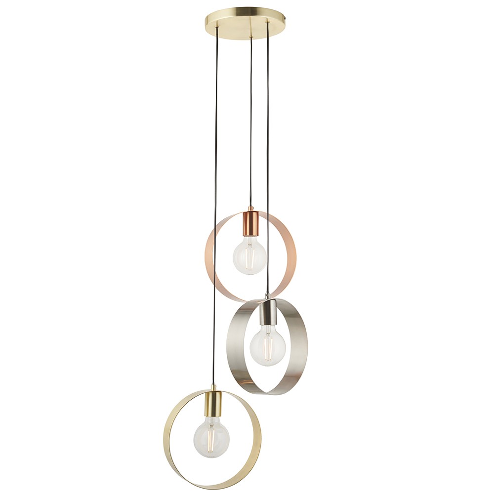 ENDON Hoop 3lt Pendant Brushed brass, nickel & copper plate 3 x 40W E27 GLS - ED-81922