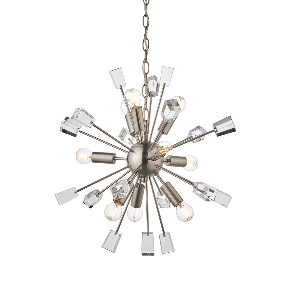 ENDON Miro 9lt Pendant Satin nickel plate & clear crystal 9 x 6W LED E14 - ED-81917