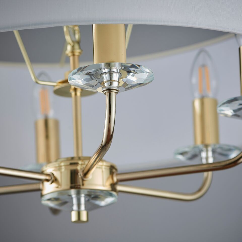 ENDON Nixon 6lt Pendant Brass plate & vintage white fabric 6 x 40W E14 candle - ED-70561