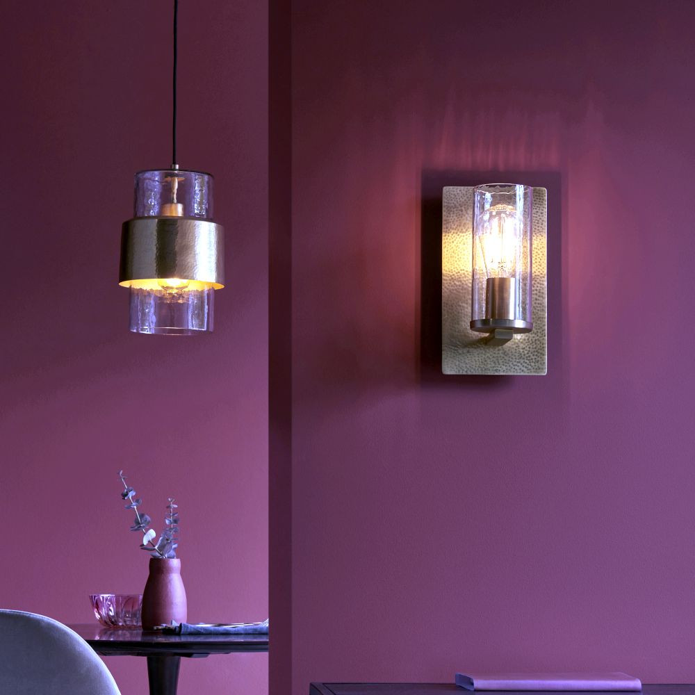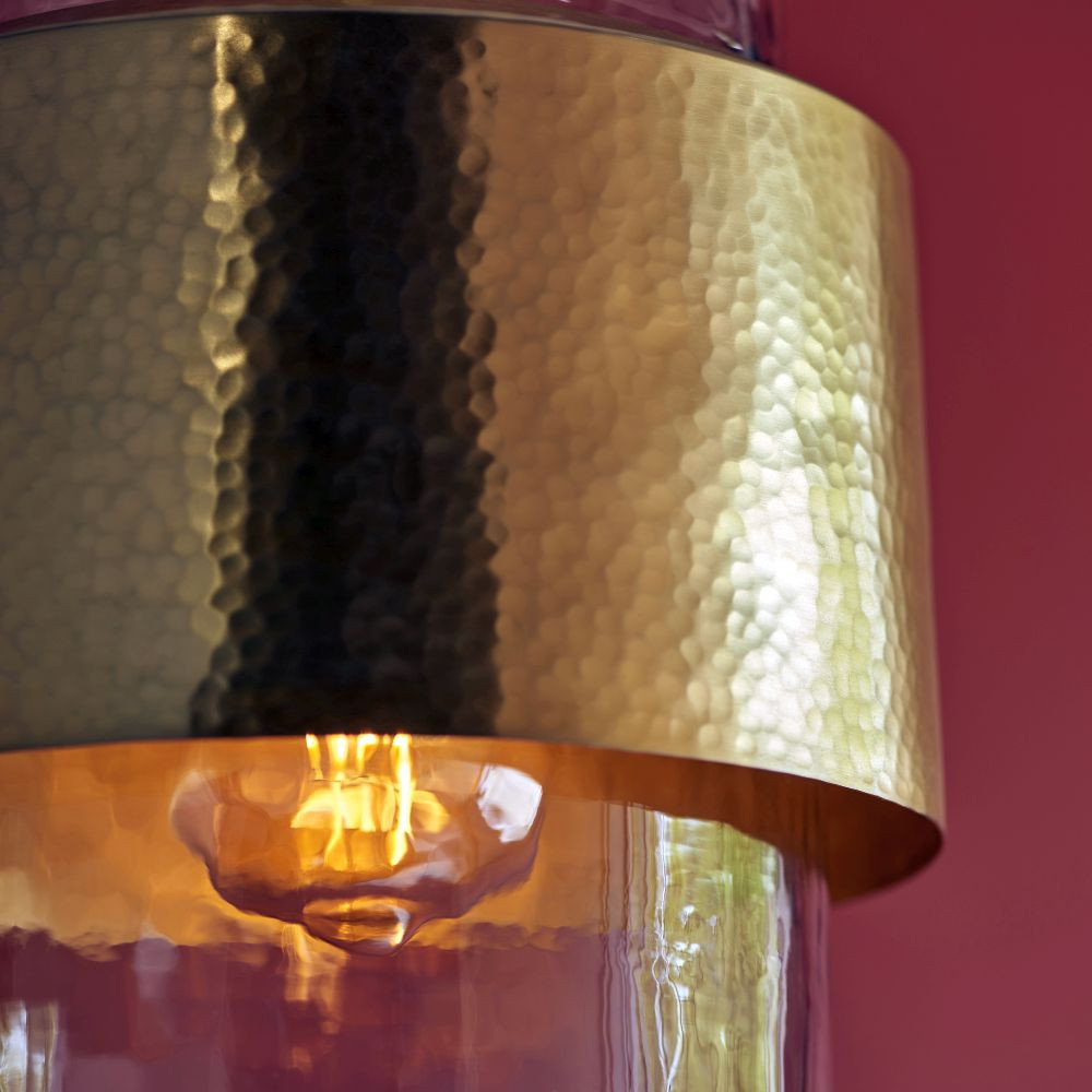kalapált sárgaréz lemez és texturált átlátszó üveg