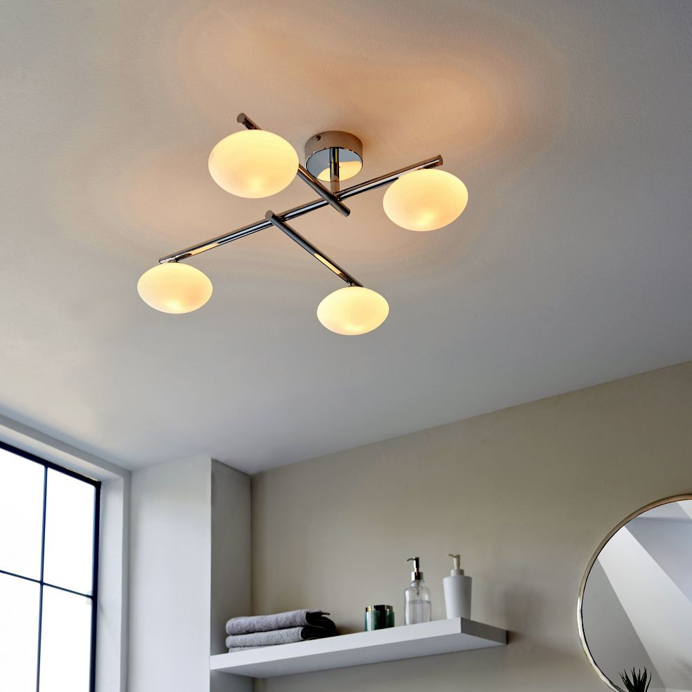 Fürdőszoba: A vízálló mennyezeti lámpák praktikus és biztonságos megvilágítást nyújtanak ebben a nedves környezetben.