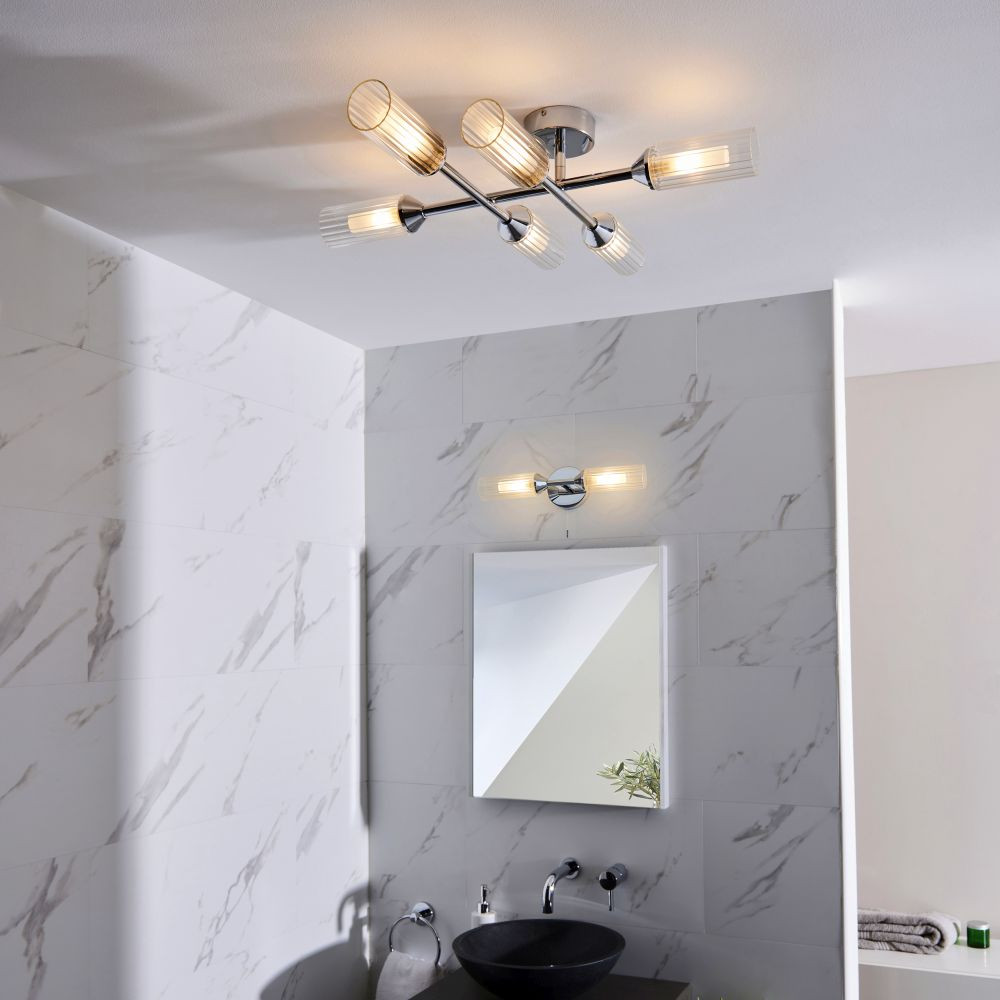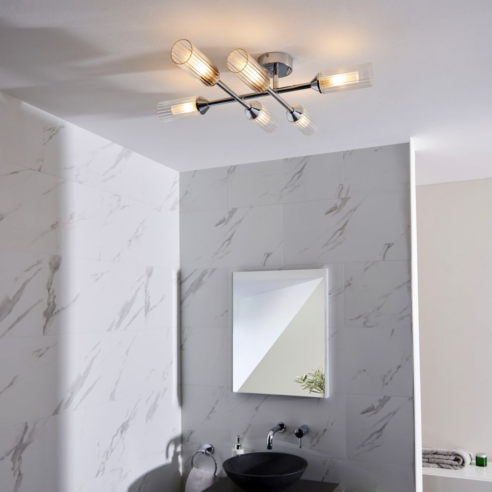 Fürdőszoba: A vízálló mennyezeti lámpák praktikus és biztonságos megvilágítást nyújtanak ebben a nedves környezetben.