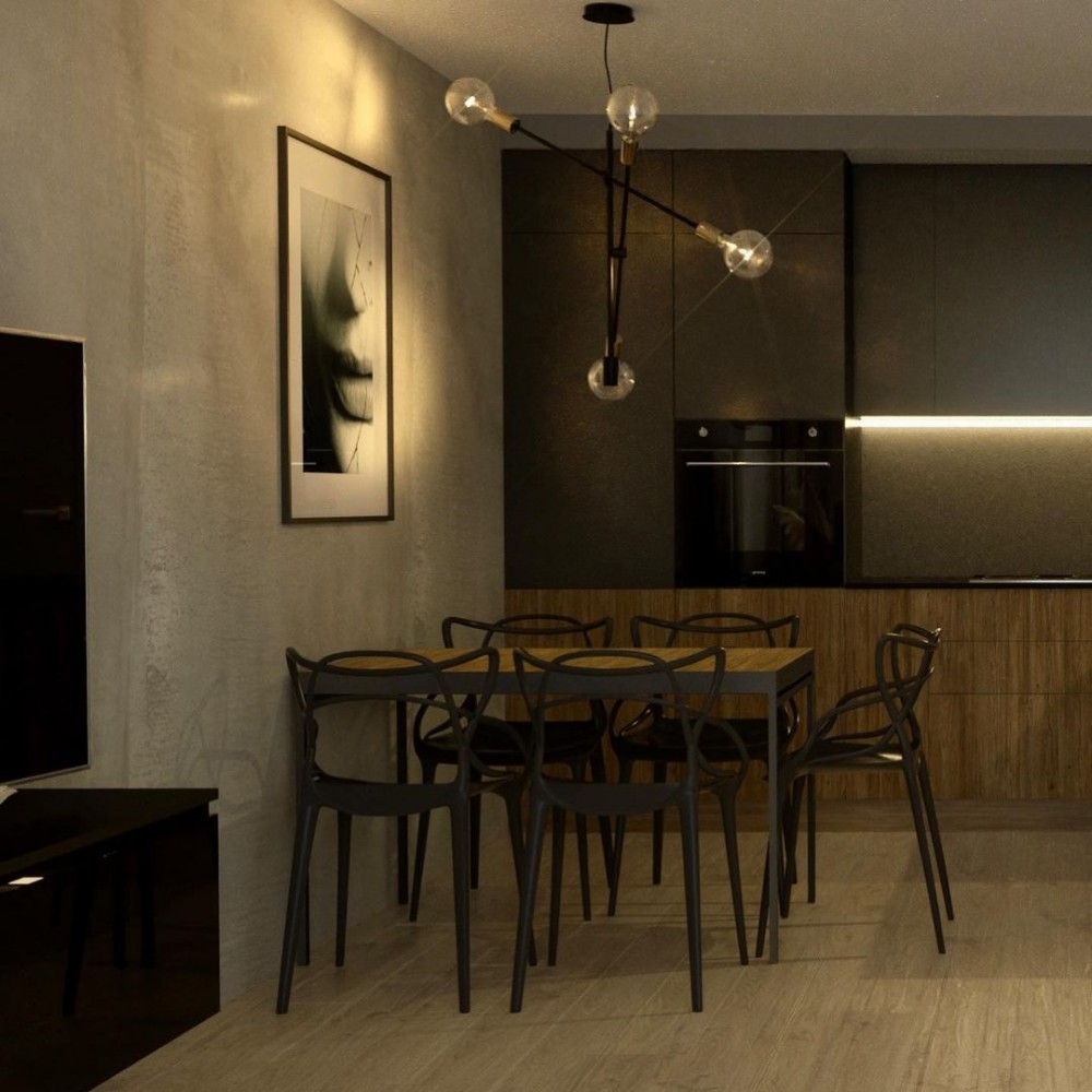Étkező: Az étkezőasztal felett elhelyezett függeszték eleganciát kölcsönöz a térnek és kiemeli a közös étkezések fontosságát.