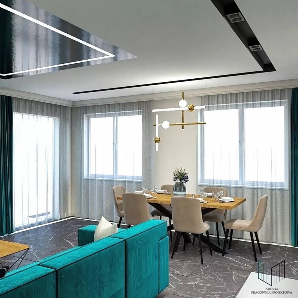 Étkező: Az étkezőasztal felett elhelyezett függeszték eleganciát kölcsönöz a térnek és kiemeli a közös étkezések fontosságát.
