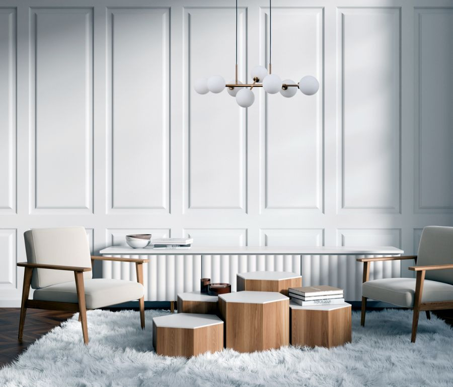 Központi elem: Egy csillár a szoba fókuszpontjává válhat, köré építve a többi dekorációs elemet és bútordarabot.