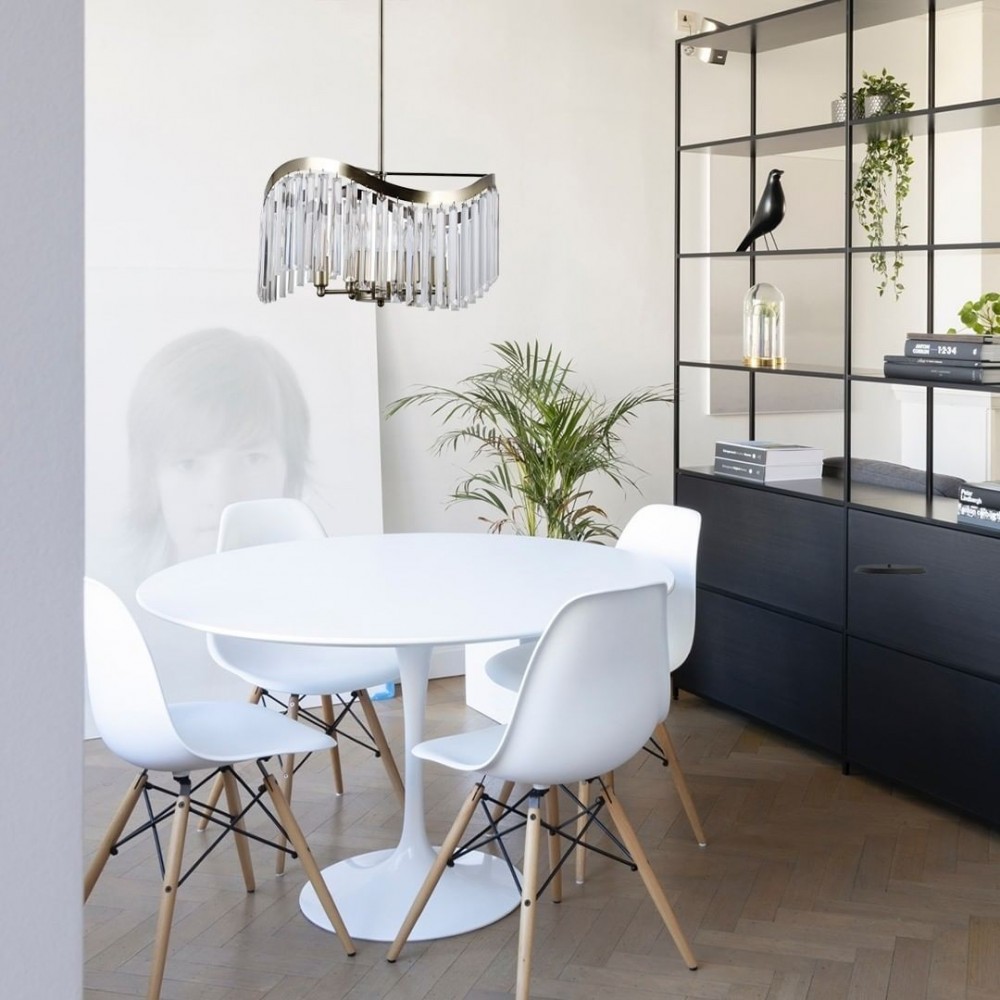 Étkező: Az étkezőasztal felett elhelyezett függeszték eleganciát kölcsönöz a térnek és kiemeli a közös étkezések fontosságát.