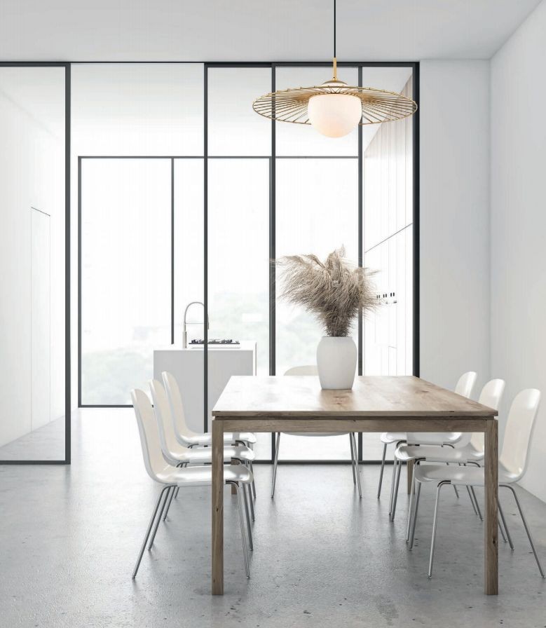 Étkező: Az étkezőasztal felett elhelyezett függeszték eleganciát kölcsönöz a térnek és kiemeli a közös étkezések fontosságát.