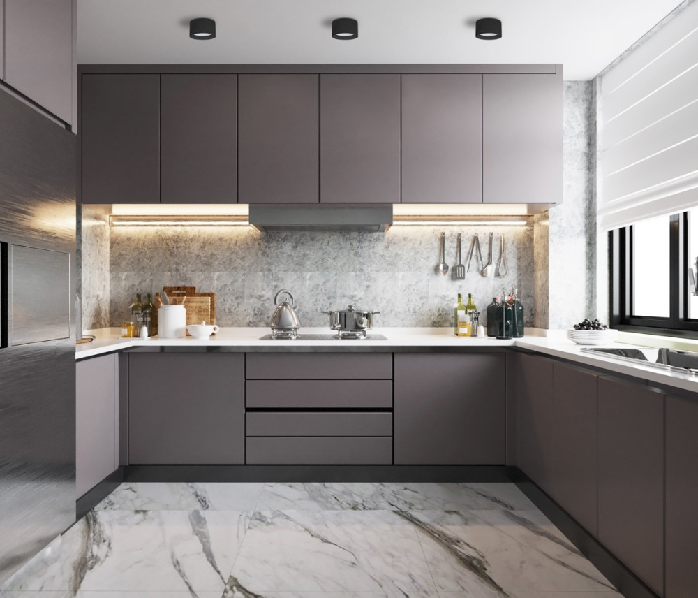 Konyha: A funkcionális, de stílusos mennyezeti lámpák elősegítik a konyhai tevékenységek zavartalan végzését.