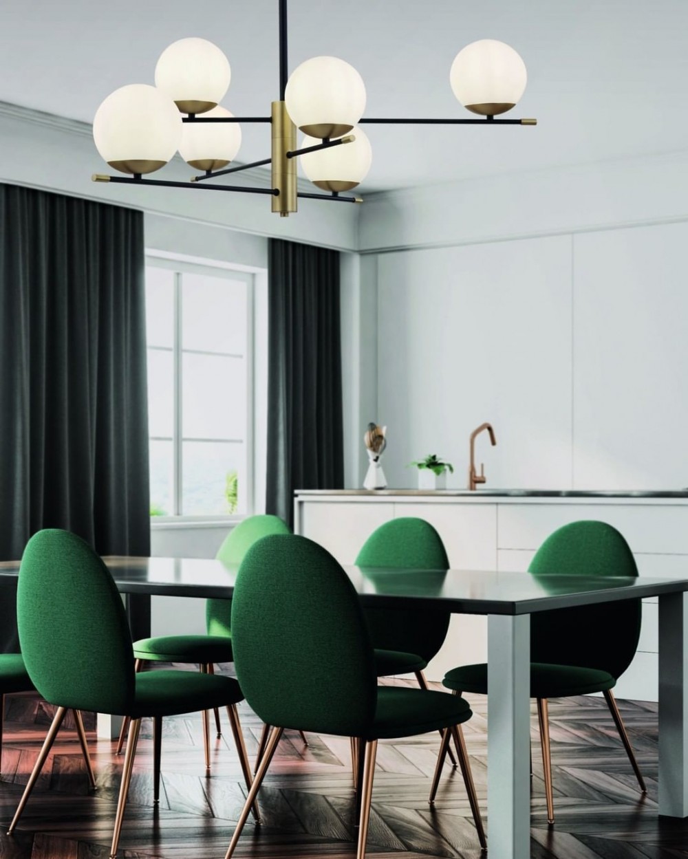 Étkező: Az étkezőasztal felett elhelyezett függeszték eleganciát kölcsönöz a térnek és kiemeli a közös étkezések fontosságát.