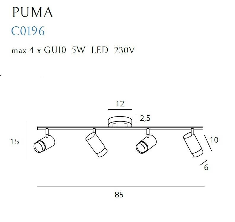 MaxLight C0196 LAMPA SUFITOWA PUMA 4 GU10 - MAX-C0196