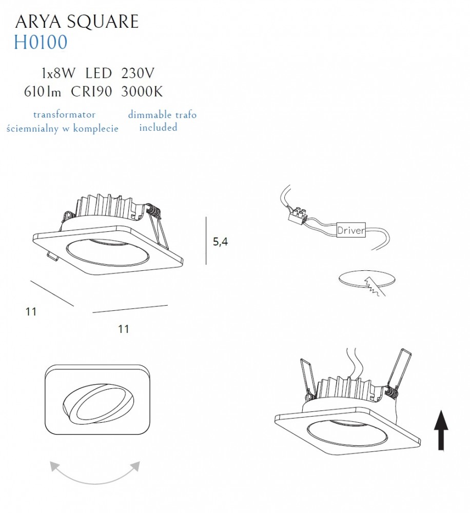 MaxLight H0100 OPRAWA WPUSTOWA MAX ARYA SQUARE WHITE 8W ŚCIEMNIALNA - MAX-H0100