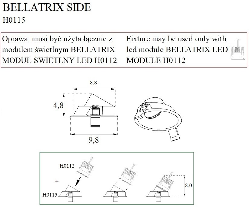 MaxLight H0115 OPRAWA WPUSTOWA BELLATRIX SIDE BIAŁA - BEZ MODUŁU ŚWIETLNEGO LED H0112 - MAX-H0115