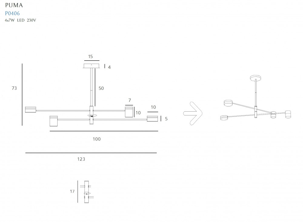 MaxLight P0406 LAMPA WISZĄCA PUMA LED 4x 7W BK/WD - MAX-P0406