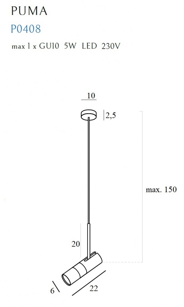 MaxLight P0408 LAMPA WISZĄCA PUMA 1 GU10 - MAX-P0408