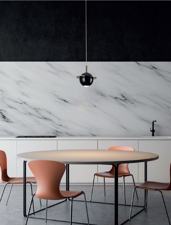 Étkező: Az étkezőasztal felett elhelyezett függeszték eleganciát kölcsönöz a térnek és kiemeli a közös étkezések fontosságát.
