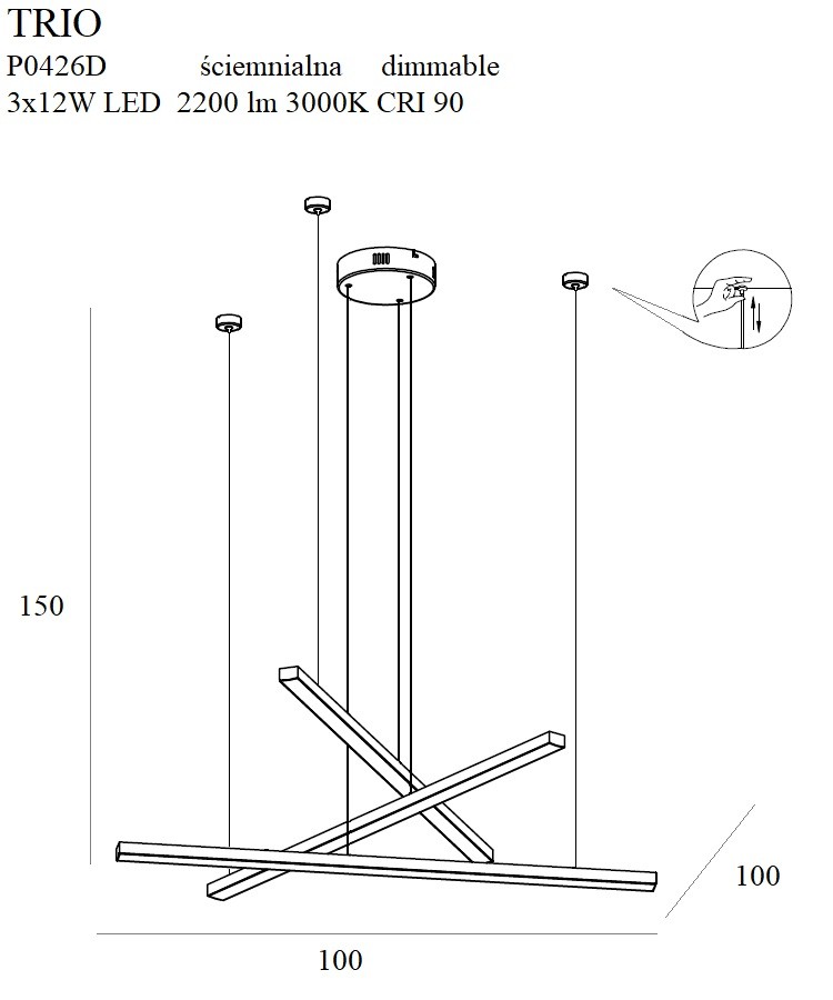 MaxLight P0426D LAMPA WISZĄCA TRIO 3 ZŁOTA ŚCIEMNIALNA - MAX-P0426D