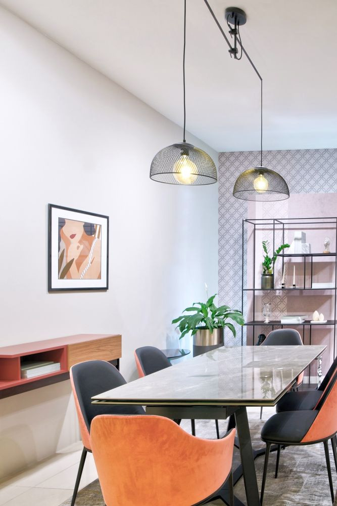 Étkező: Az étkezőasztal felett elhelyezett függeszték eleganciát kölcsönöz a térnek és kiemeli a közös étkezések fontosságát.