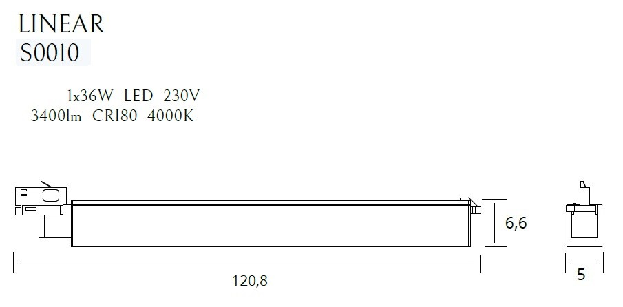 MaxLight S0010 LAMPA DO SZYNOPRZEWODU LINEAR TRACK WHITE 36W 4000K - MAX-S0010