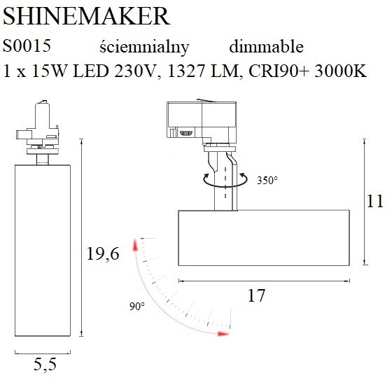 MaxLight S0015 LAMPA DO SZYNOPRZEWODU SHINEMAKER BIAŁA- ŚCIEMNIALNA - MAX-S0015