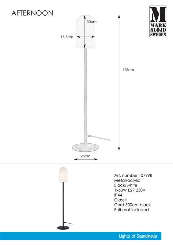 Markslöjd AFTERNOON Podłogowa 1L Big Czarna/Biała IP44 - MS-107998