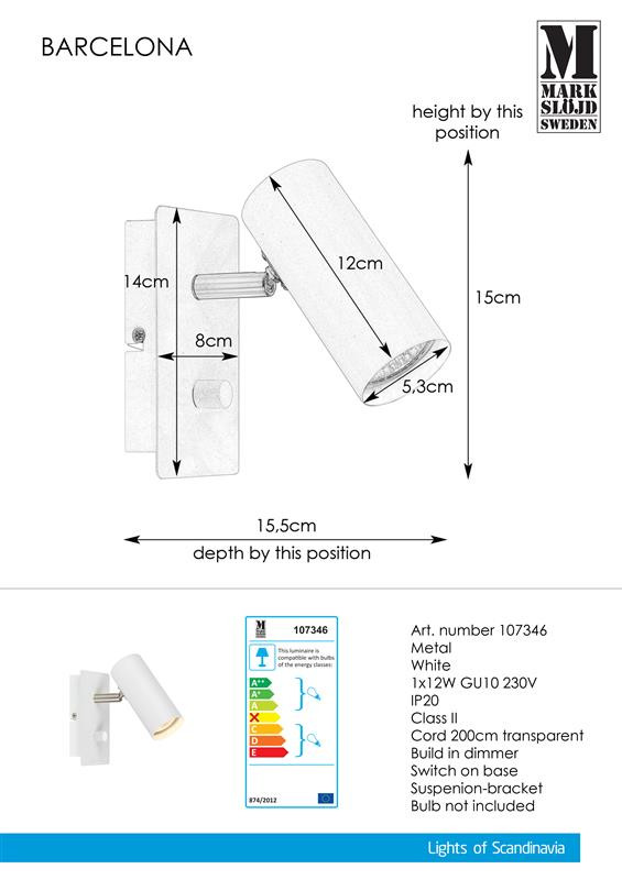 Markslöjd BARCELONA Kinkiet 1L Bialy - MS-107346