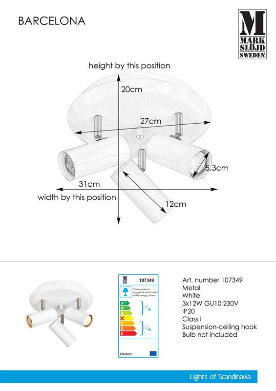 Markslöjd BARCELONA Plafon 3L Biały - MS-107349