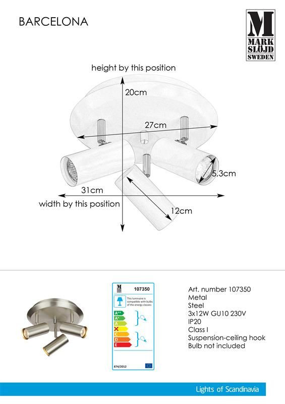 Markslöjd BARCELONA Plafon 3L Stal - MS-107350