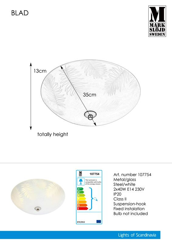 Markslöjd BLAD Plafond 2L 35cm White/Steel  - MS-107754