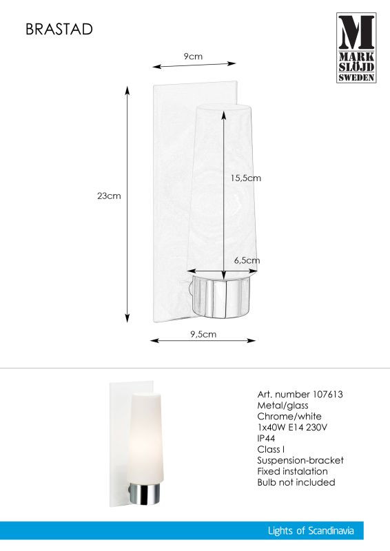 Markslöjd BRASTAD Wall 1L White IP44 - MS-107613