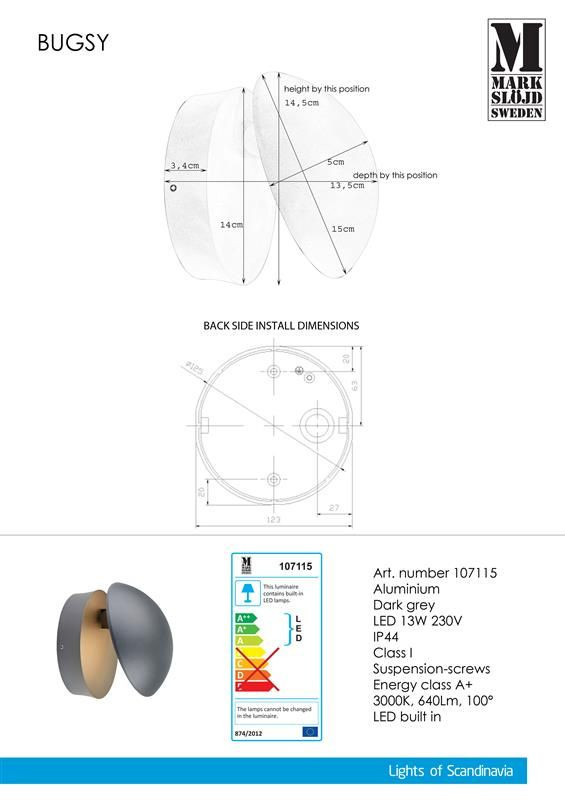 Markslöjd BUGSY Wall Dark Grey - MS-107115 /KIFUTÓ!!/