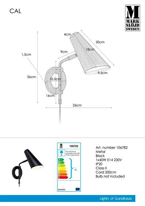 Markslöjd CAL Kinkiet 1L Czarny - MS-106782