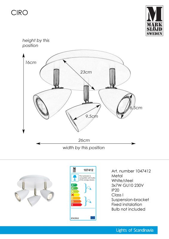 Markslöjd CIRO Plafon 3L Biały/Stal - MS-107412