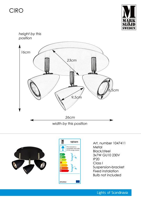 Markslöjd CIRO Plafon 3L Czarny/Stal - MS-107411