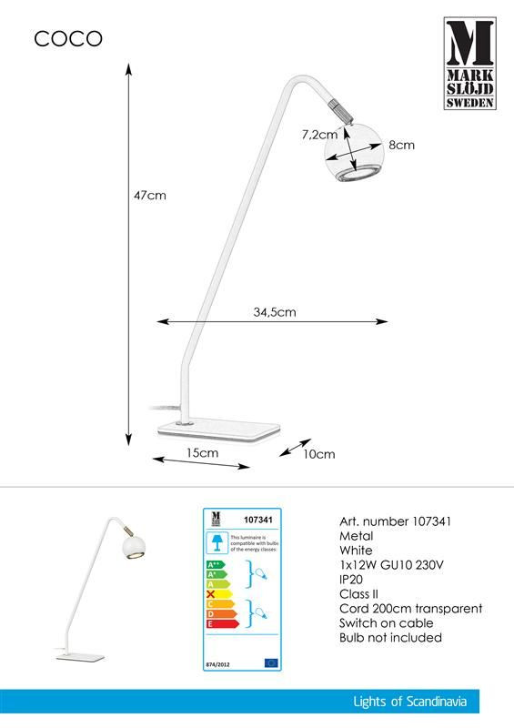 Markslöjd COCO Stołowa 1L Biała - MS-107341