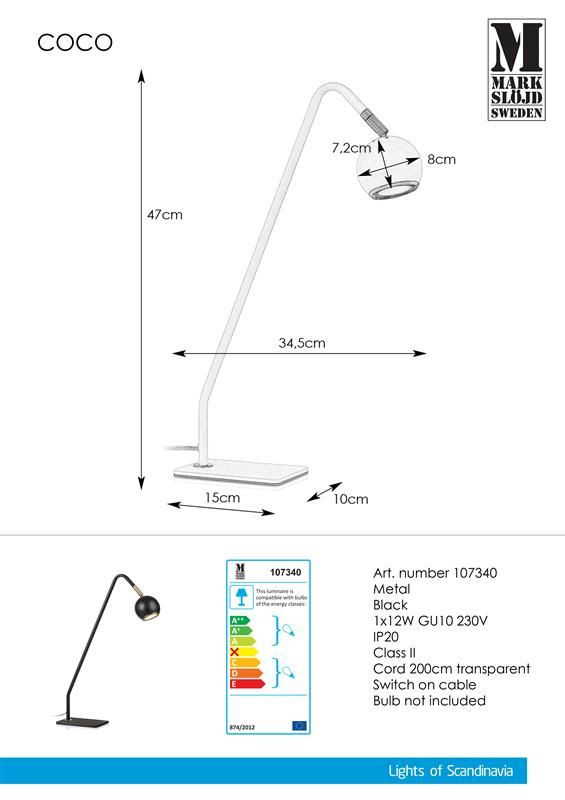 Markslöjd COCO Stołowa 1L Czarna - MS-107340