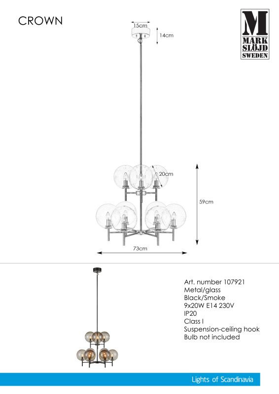 Markslöjd CROWN Wisząca 9L Czarna/Przydymiony - MS-107921