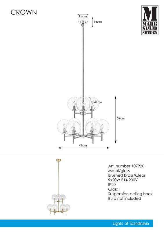 Markslöjd CROWN Wisząca 9L Złoty Szczotkowany/Przeźroczysty - MS-107920