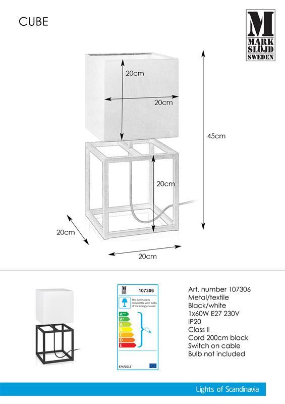 Markslöjd CUBE Table 1L 45cm Black/White - MS-107306