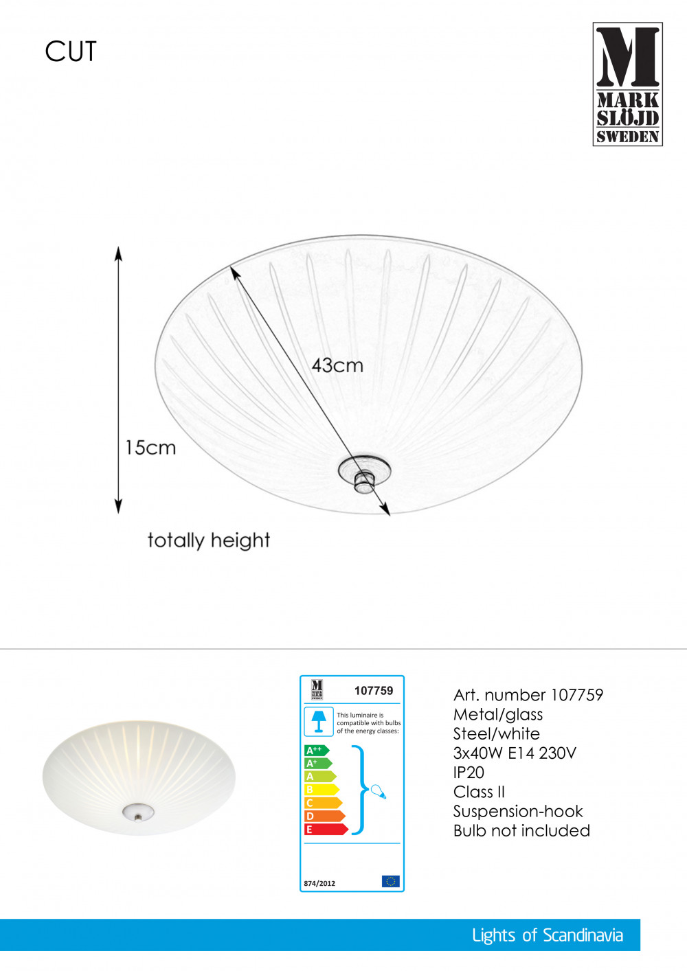 Markslöjd CUT Plafond 3L 43cm White/Steel - MS-107759