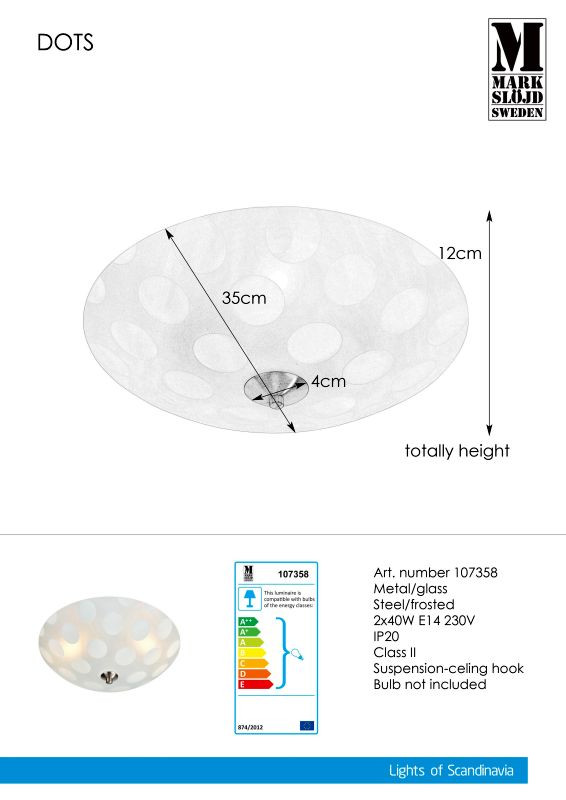 Markslöjd DOTS Plafon 2L 35cm Matowy/Stal - MS-107358