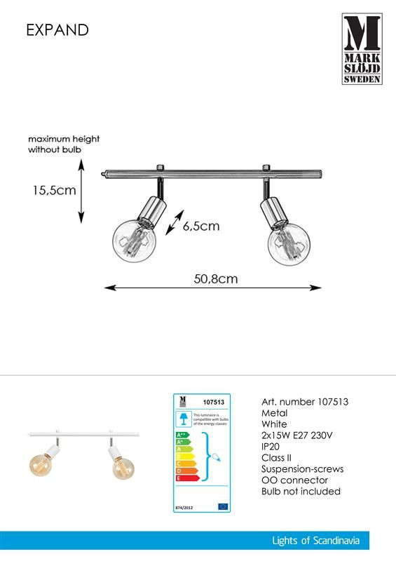 Markslöjd EXPAND Spot 2L 50cm E27 Cylinder White - MS-107513